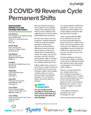In May, more than 30 executives participated in the HealthLeaders Revenue Cycle Web Exchange in which they shared their learnings from managing teams and operations during the coronavirus emergency. The adjustments they’ve made during this time are expected to last way beyond the pandemic.