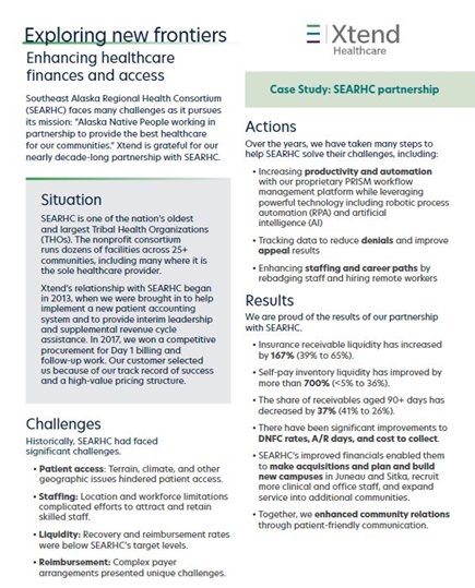 Southeast Alaska Regional Health Consortium (SEARHC) faces many challenges as it pursues its mission: “Alaska Native People working in partnership to provide the best healthcare for our communities.” Xtend is grateful for our nearly decade-long partnership with SEARHC.