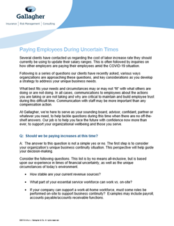 What best fits your needs and circumstances may or may not “fit” with what others are doing or are not doing. In all cases, communications to employees about the actions you are taking or are not taking and why are critical to maintain and build employee trust during this difficult time. Communication with staff may be more important than any compensation action.