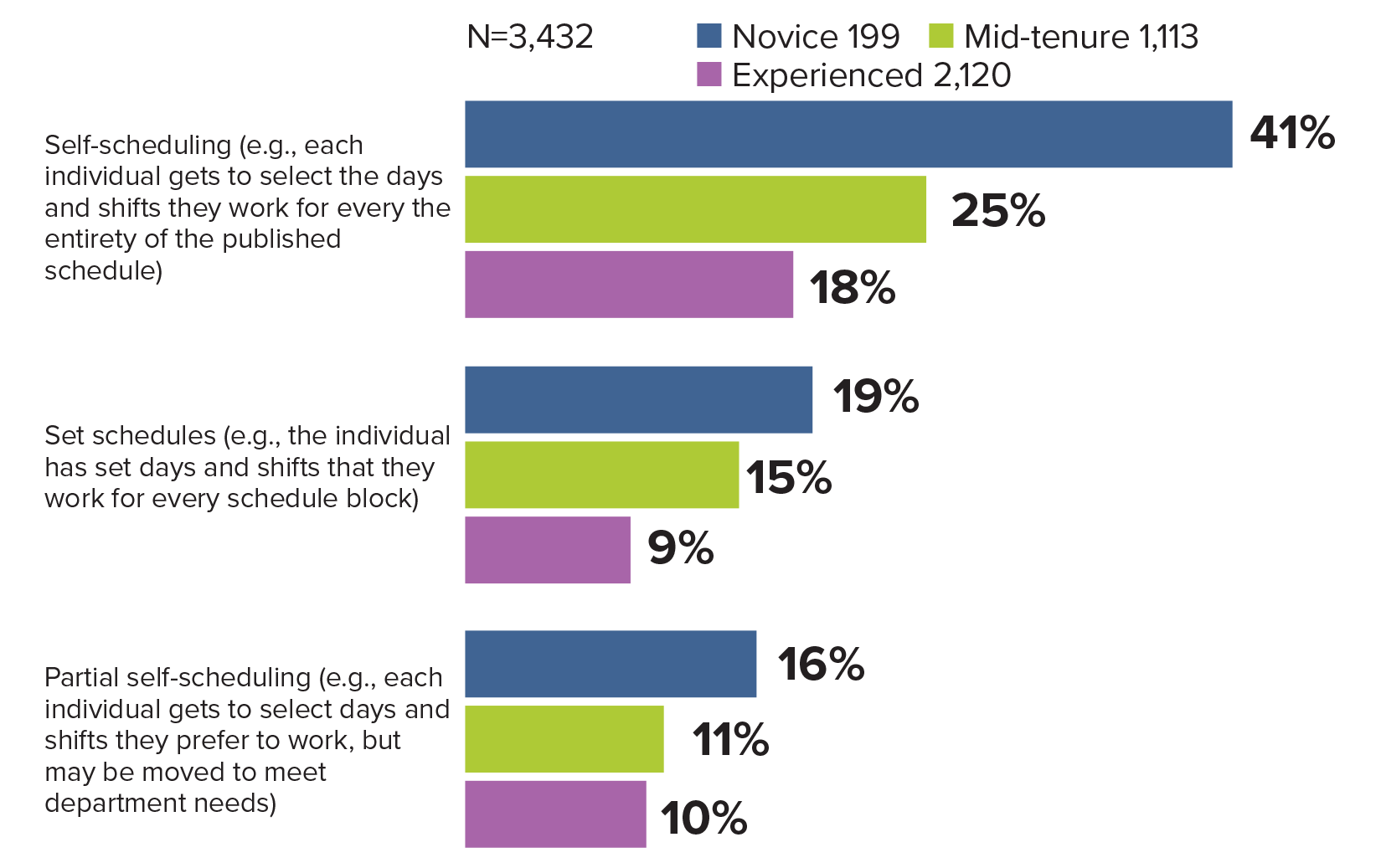 The survey also found that 75% of mid-tenure and most tenured nurses really enjoy working with their less experienced peers, according to Mensik Kennedy. CNOs should try to provide time in nurses’ schedules to allow for communication and teaching moments to happen between staff members when possible. This is where flexibility and building healthier work environments are key.