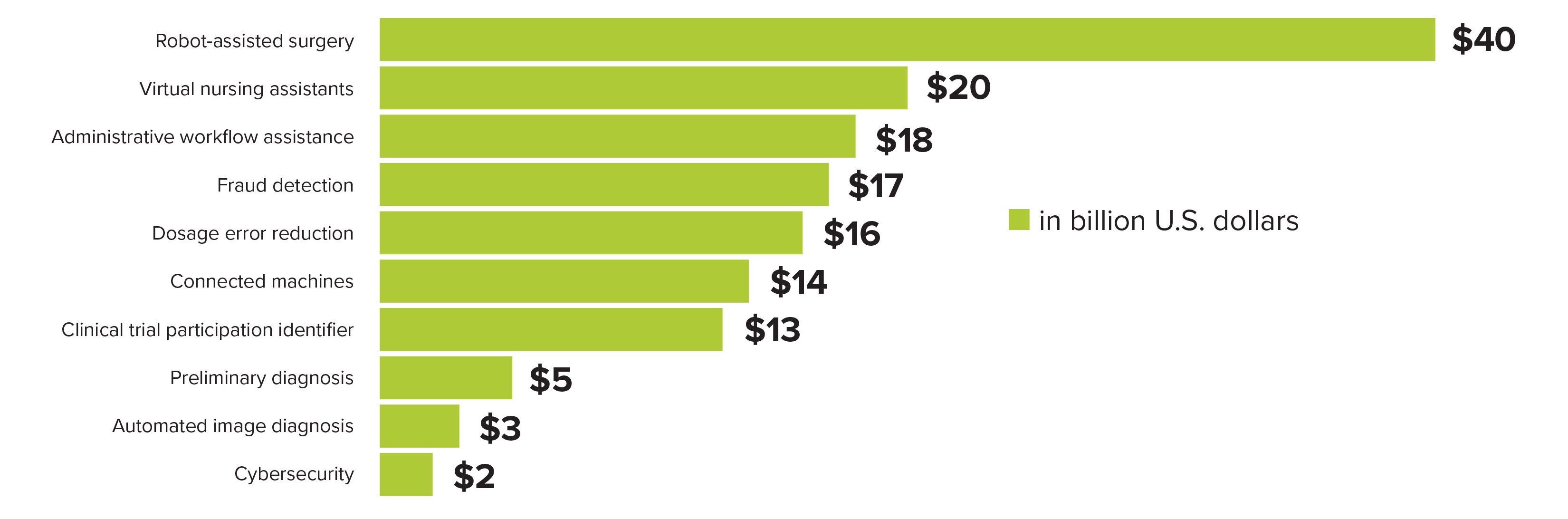 Forecast value of the artificial intelligence healthcare market by application world wide in 2026