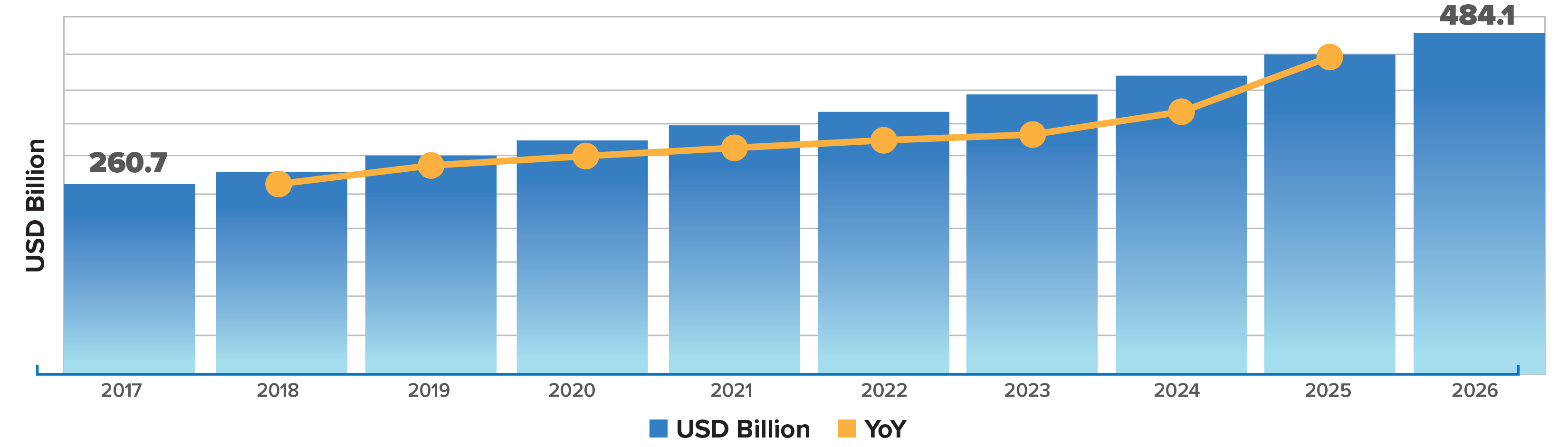 SOURCE: Home Healthcare Market (USD Billion) & YoY Growth (%).