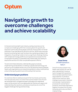 This article delves into the strategies involved in scaling a business within this dynamic sector. It explores key strategies, including gaining a comprehensive understanding of payer processes, implementing standardization, investing in people and technology, and forging partnerships with scalable vendors. By prioritizing these strategies, health care organizations can streamline operations, reduce inefficiencies, and maintain a focus on delivering high-quality patient care while scaling their business. Strengthen your practice and drive sustainable growth with Optum by your side.