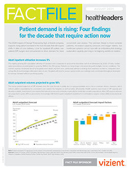 The 2025 Impact of Change® Forecast by Sg2, a Vizient company, anticipates a rise in patient demand over the next decade that will necessitate shifts in the sites of care delivery. Look for inpatient (IP) utilization spikes, outpatient (OP) volume surges, and consumerism to drive demand for more convenient access to care.