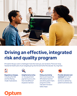 Today, health plans face increasing and unprecedented challenges — from regulatory shifts to provider abrasion. Fortunately, technology and other factors are fueling new approaches that can help create new efficiencies. Implementing strategies to integrate risk and quality programs can help improve member outcomes, enhance efficiency and minimize regulatory issues. By leveraging AI and NLP, health plans can help improve transparency and automation to create a more streamlined and effective approach.