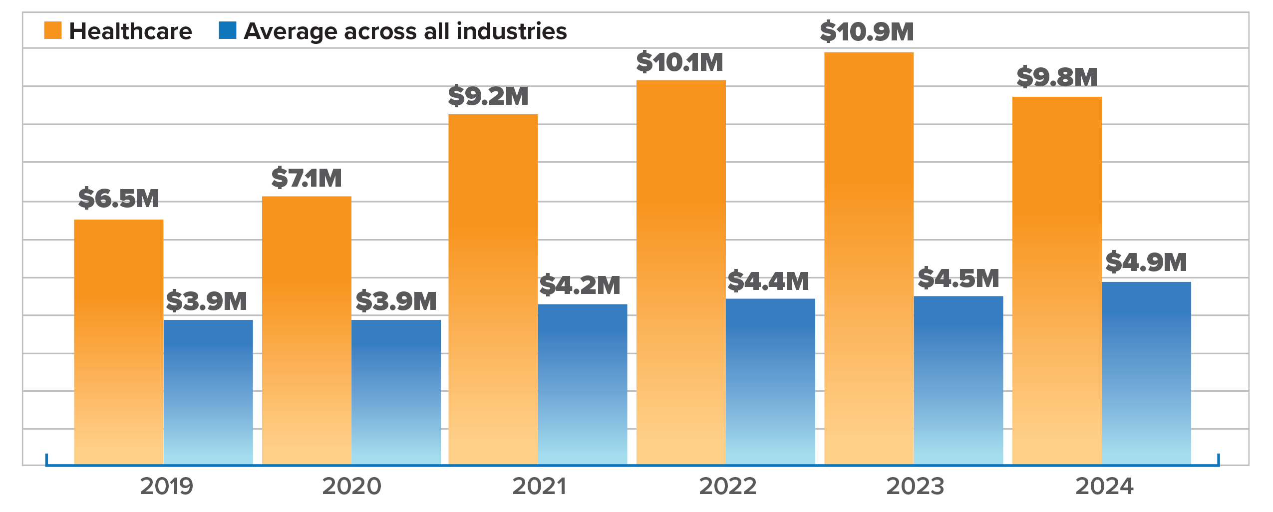 In 2024, healthcare faced more cyberthreats than any other critical infrastructure, with 238 ransomware threats and 206 data breaches.