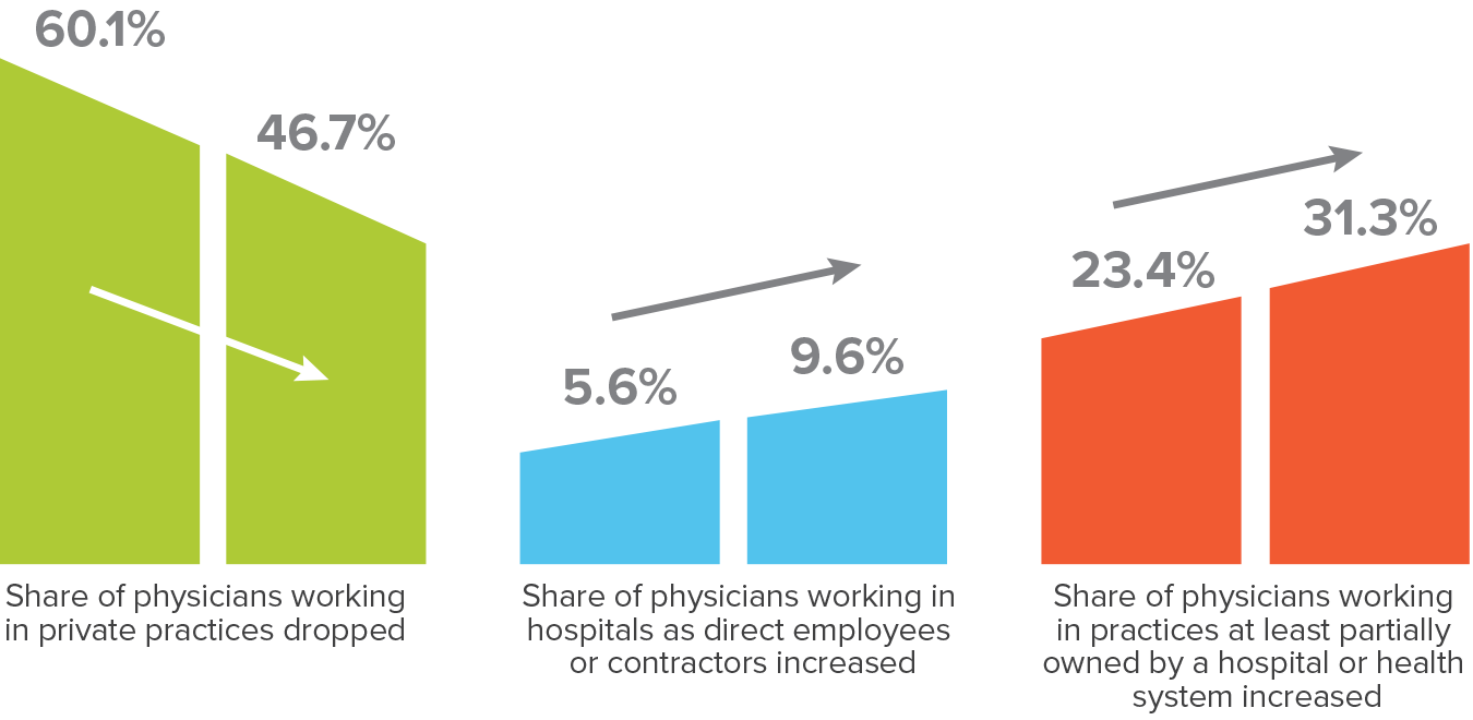 As healthcare has evolved over time, so has the prevalence of private physician practices. What was once a common occurrence for patients—heading to the family-owned doctor’s office—has in many cases been replaced by the experience of seeking care at a network of physicians employed by large organizations.