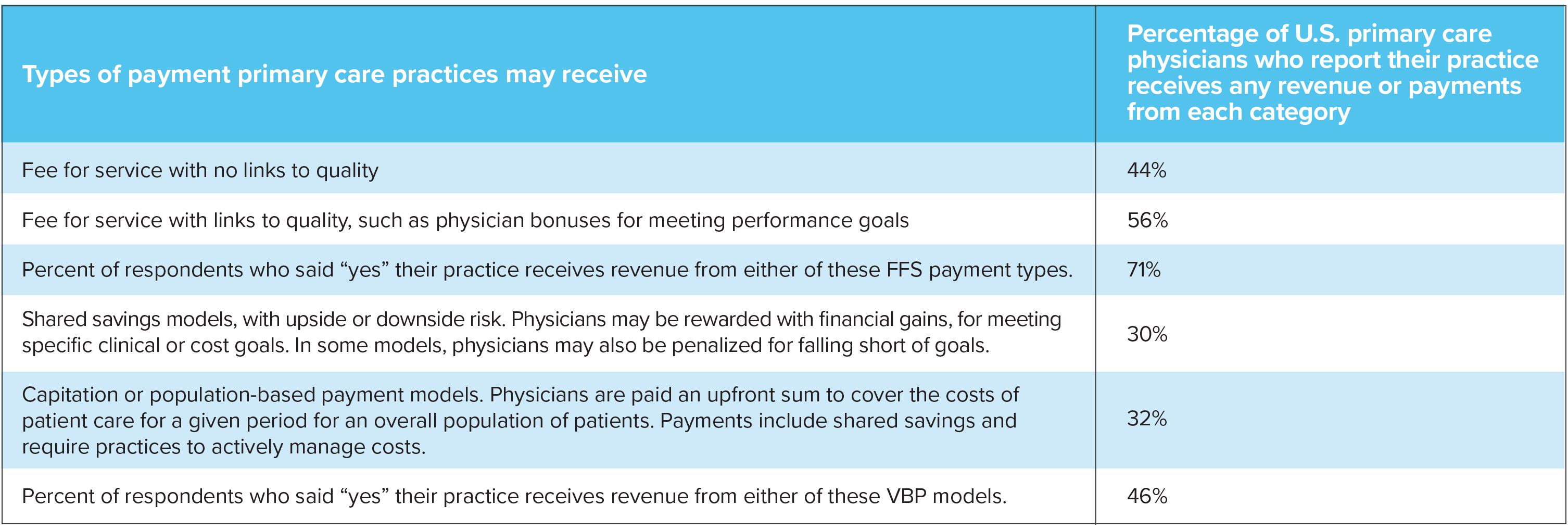 SOURCE: Celli Horstman and Corinne Lewis, “Engaging Primary Care in Value-Based Payment: New Findings from the 2022 Commonwealth Fund Survey of Primary Care Physicians,” To the Point (blog), Commonwealth Fund, Apr. 13, 2023. https://doi.org/10.26099/k3v8-0k69
