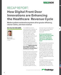 Chief Innovation Officer for Trubridge, Wes Cronkite, explored the impact of the digital front door on revenue cycle operations, the patient experience, and revenue capture.